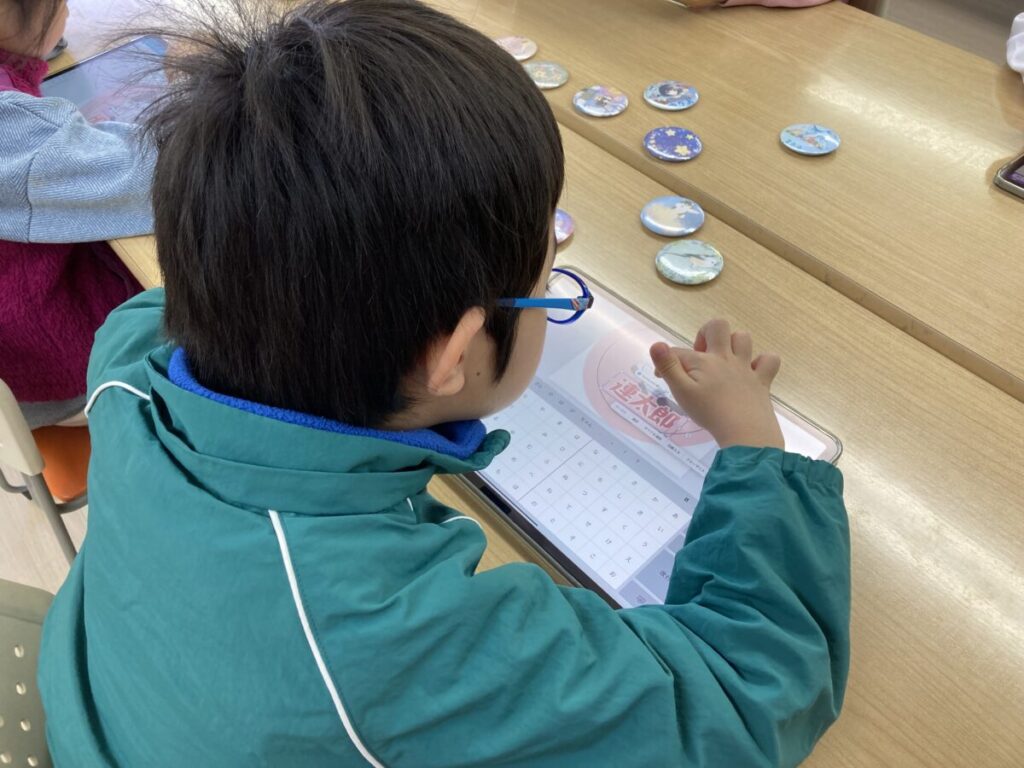 iPadを使って、子どもたちはテーマにあった作品を思い思いにデザインしていきます。